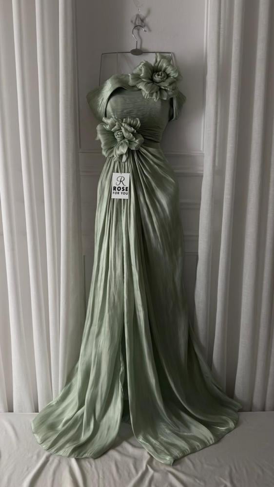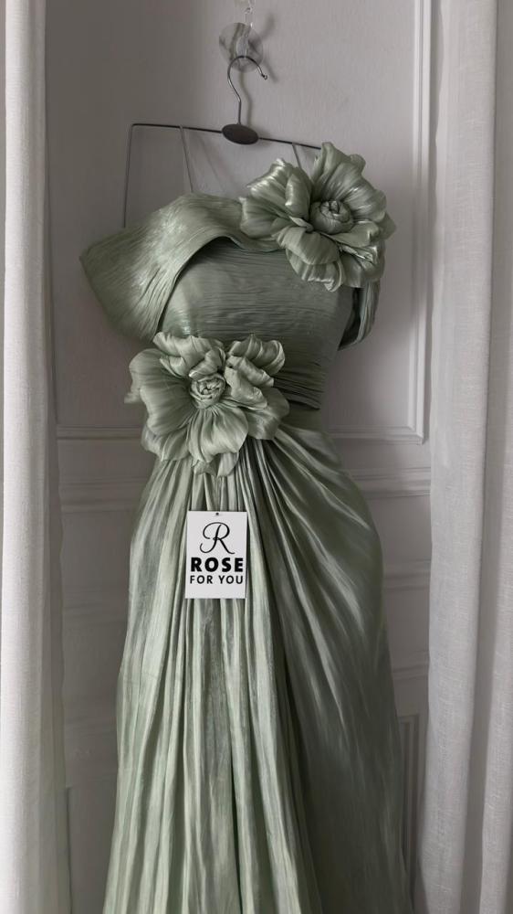 * التصميم: كتف واحد مع ورود بارزة + قصة انسيابية طويلة